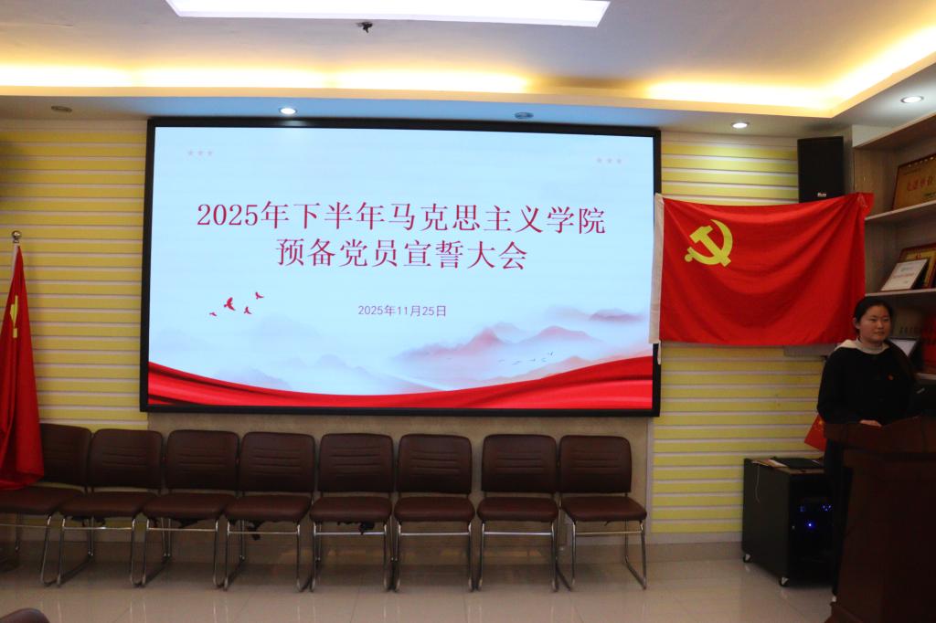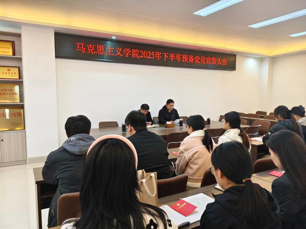 为加强党员队伍建设,筑牢学生理想信念根基,11月25日下午,马克思主义学院预备党员宣誓大会在社科楼323会议室隆重举行。本次大会由张卓同学主持,学院党委副书记王超、组织员金天及各支部预备党员参加。