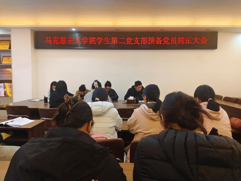 2025年12月5日上午,马克思主义学院学生第二党支部在社科楼323教室组织召开了2025年下半年预备党员转正支部大会。我院学生第二党支部书记任婷、学生第二党支部全体正式党员、预备党员和党员发展对象共同参加本次会议。会议由任婷同志主持。