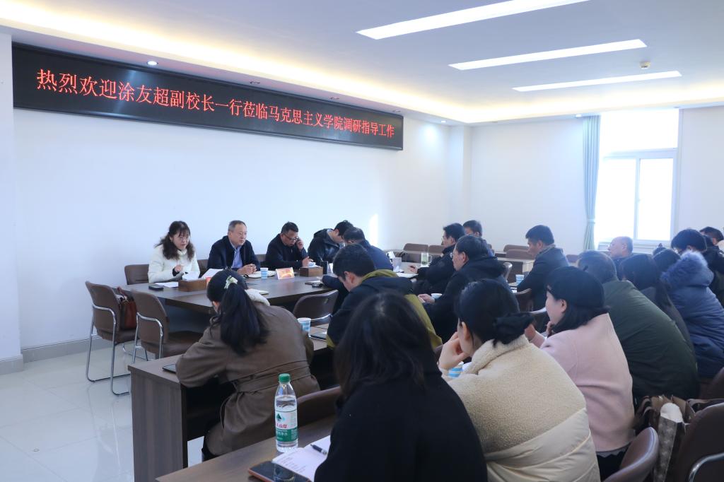 2025年12月10日上午,副校长涂友超带领社科处、校报编辑部等相关部门领导莅临我院调研指导工作。马克思主义学院院长唐国战和党政领导班子成员及相关学科骨干教师参加座谈。