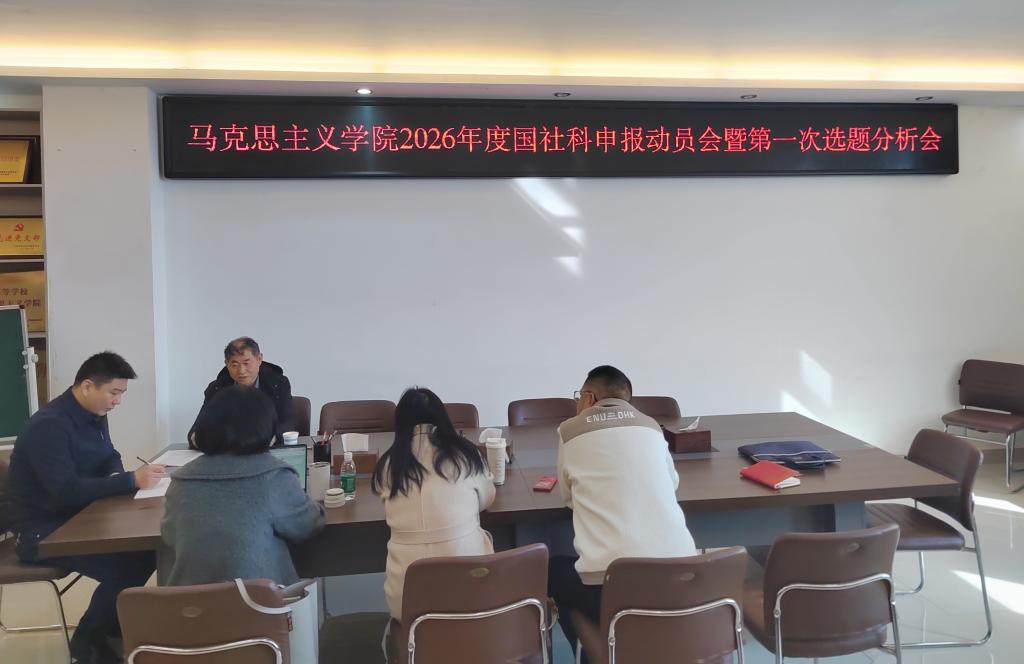 为扎实做好2026年度国家社科基金项目申报工作,切实提高项目论证质量。经过前期认真准备,10月21日和10月22上午,马克思主义学院在社科楼323会议室组织召开2026年度国家社科基金申报动员会暨第一次选题分析会。会议由学院副院长常文涛主持,唐国战、厉有国、张铁山、李世书四位评审专家及拟申报项目的28位教师分组参会。