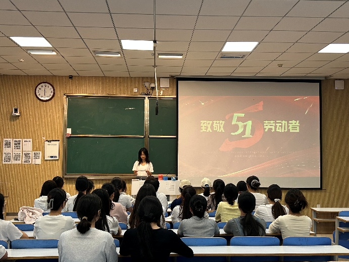 4 月 29 日,在 “五一” 国际劳动节来临之际,马克思主义学院青马工程学员们在社科楼515教室开展 “致敬劳动者,奋进新时代” 主题活动,通过观看纪录片、分享故事等形式,引导学子尊重劳动、崇尚劳动、热爱劳动,活动由班长王譯慧主持。