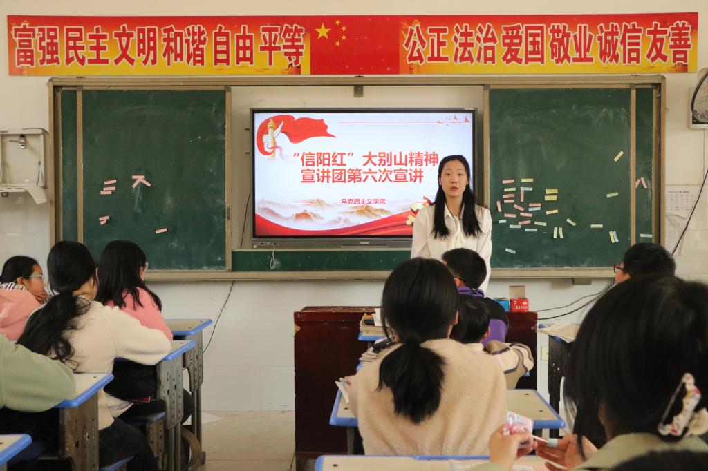 本次活动是马克思主义学院“信阳红”大别山精神宣讲团在本学期的首次宣讲,引起了良好的社会反响,这为新学期后续的宣讲活动开好头,起好步。此次宣讲活动进一步推动了大别山精神的广泛传播,让红色精神深入学生内心,激发青少年的拳拳爱国心和昂扬斗志。(马克思主义学院 周梦姚 刘孟实/供稿 陶青青/审核)