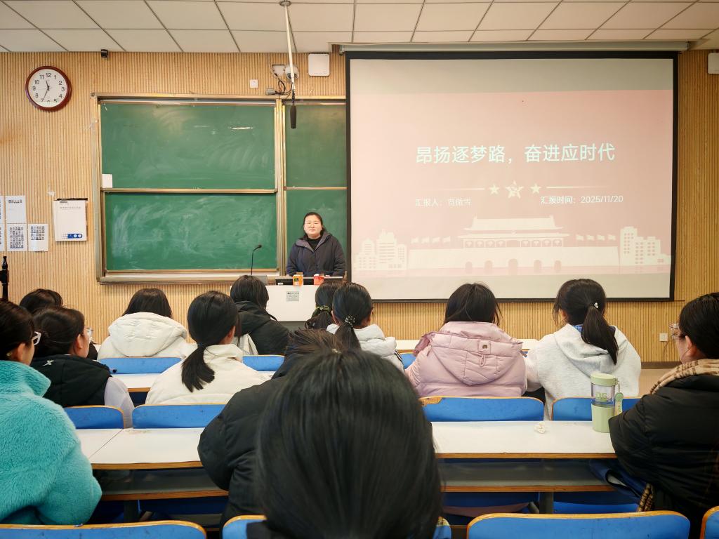 本次团课由团支书贾傲雪主持。团课伊始,贾傲雪以“我们身处怎样的时代”为切入点,围绕“两个一百年”奋斗目标历史交汇期的时代坐标,阐释了新时代青年面临的机遇与挑战。接着,贾傲雪通过科技攻关新锐、乡村振兴“新农人”、抗疫一线青年医护、为国争光运动健儿等的鲜活案例,让社团成员直观感受到榜样的力量。然后,贾傲雪从信念坚定、拼搏奋进、乐观向上三个维度解读昂扬状态,强调个人梦想唯有融入国家发展大局才能实现最大价值。同时提醒青年要警惕空想、利己、浮躁三大逐梦误区,在脚踏实地中绽放青春梦想。最后,在“如何奋进?应答时代”的实践探讨中,贾傲雪明确了“勤学储能、担当实干、创新突破”的奋进路径,倡导社团成员立大志、明大德、成大才、担大任,通过参与志愿服务和社会实践锤炼本领。