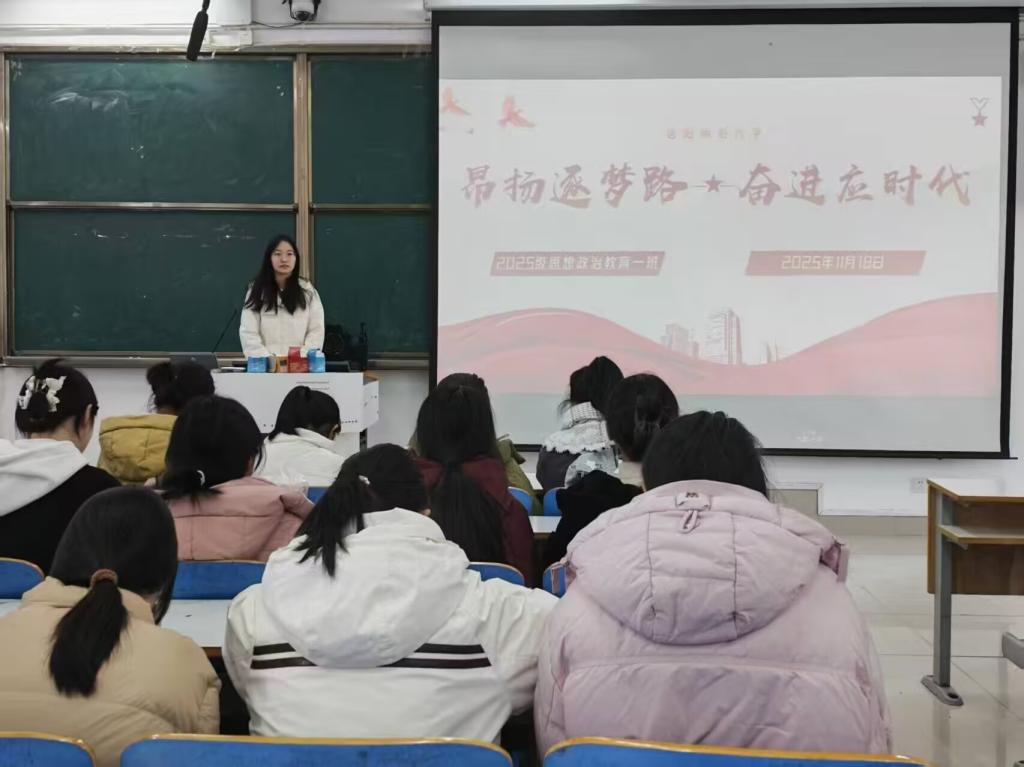 为引导青年学子将个人理想融入时代发展洪流,11月18日下午,马克思主义学院思想政治教育一班于社科楼514教室开展“昂扬逐梦路,奋进应时代”主题团课。本次团课由团支书宋晓然主持,班级全体同学参加。