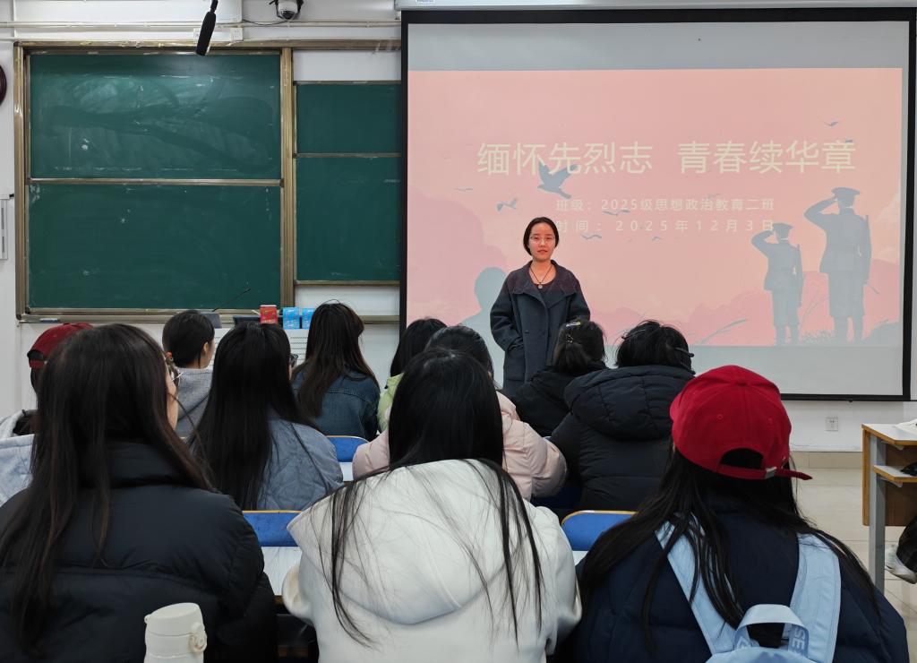 为引导同学们传承红色基因、坚定理想信念,12月16日,马克思主义学院2025级思想政治教育二班在社科楼514教室开展“缅怀先烈志,青春续华章”主题团课。活动由团支书崔锐琳主持。