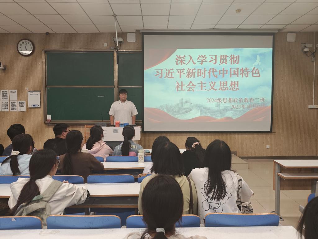 为深入学习贯彻习近平新时代中国特色社会主义思想,切实激发青年的使命感与责任感,10月9日下午,马克思主义学院2024级思想政治教育二班于社科楼514教室举办了“深入学习贯彻习近平新时代中国特色社会主义思想”主题团课活动。此次团课由团支书王志颖主持,二班全体同学共同参与。