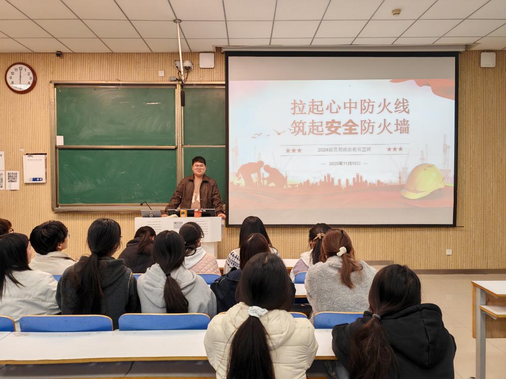 为增强同学们的消防安全意识,提升火灾应急处置和自救互救能力,马克思主义学院2024级思想政治教育三班于11月10日在社科楼515教室成功举办“拉起心中防火线,构筑防火安全墙”主题班会。本次活动由班长杨迎滨主持,全体同学积极参与。